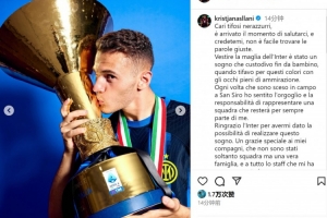 阿斯拉尼社媒写道:“亲爱的国米球迷们,现在是向大家告别的时候了,相信我,找到合适的言辞真的不容易。穿上国米的球衣是我儿时怀揣的梦想,那时我怀着满心的崇拜为国米球员们加油。